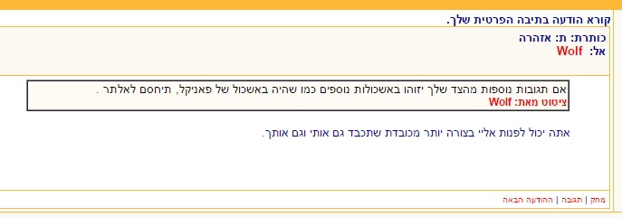 מנהל הפורום wolf שלח לי אזהרה שלכאורה נראית בעיניו מאוד איימת