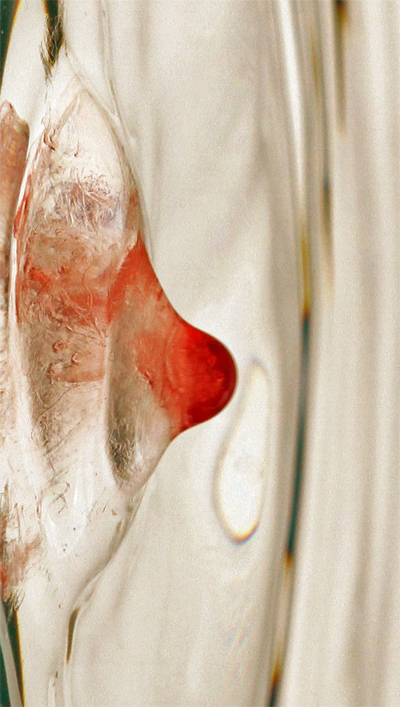 מה הנוזל האדום שטפטפת פנימה שמתערבב בטיפה בצורה חלקית כזו?