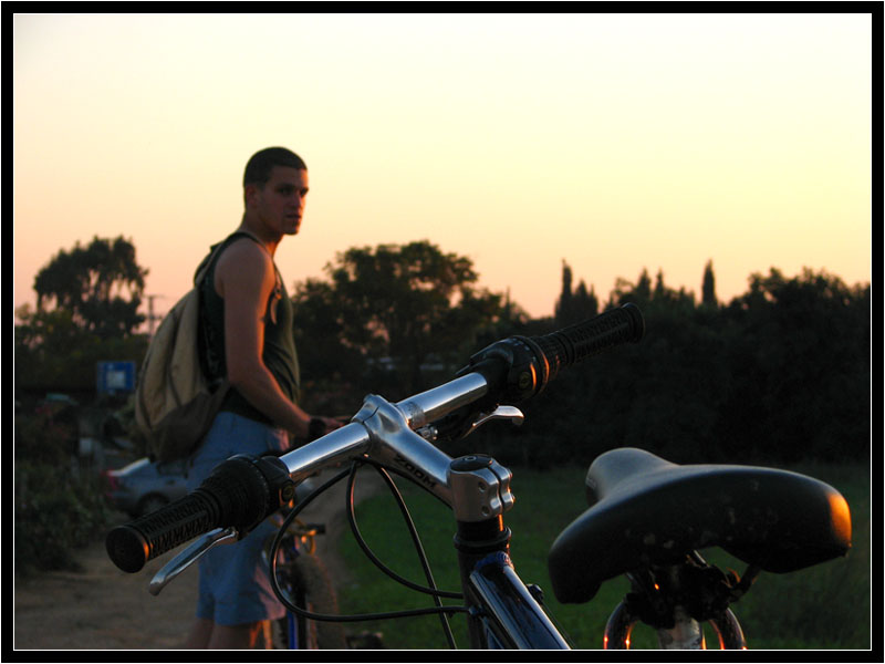 תמונה יפה אבל משהו באופניים קצת מציק לי .. ממש אהבתי את הרעיון אבל הצבעים של האופניים מציקים לי .. במיוחד הקידון :S בכל מקרה, נסה טיפה להבהיר את התמונה וגם אולי זווית אחרת + לבקש מהמצולם לזוז טיפה שמאלה היו עושים את התמונה פחות עמוסה, בכל מקרה, אחלה תמונה!