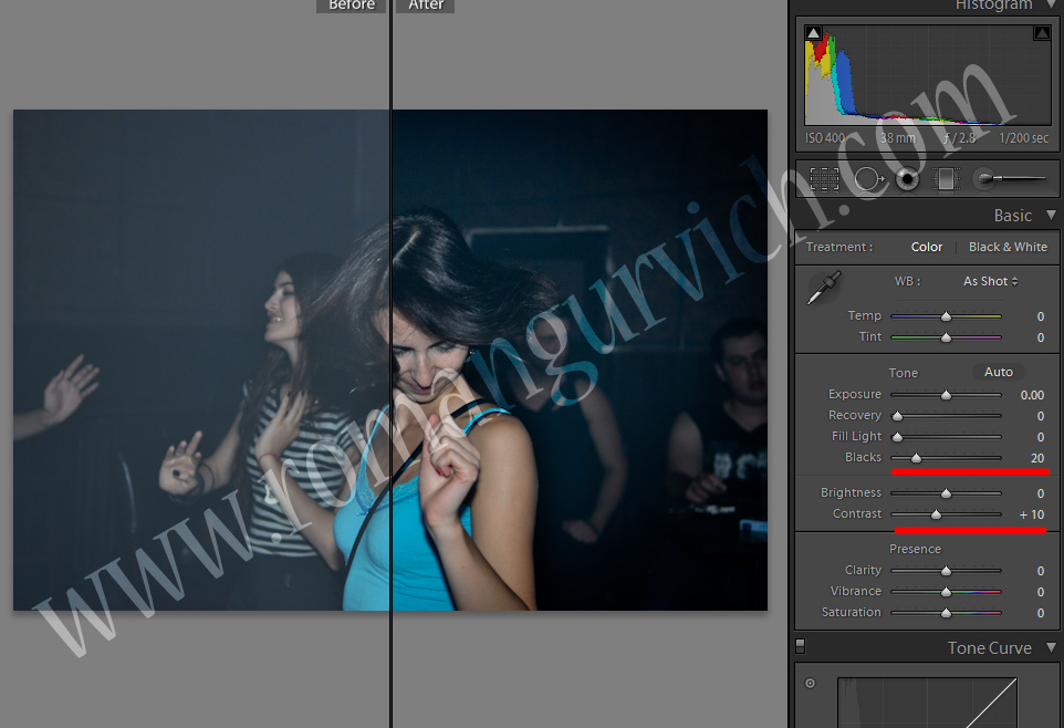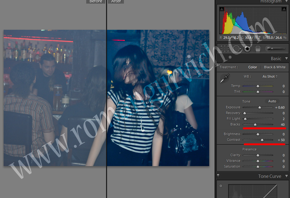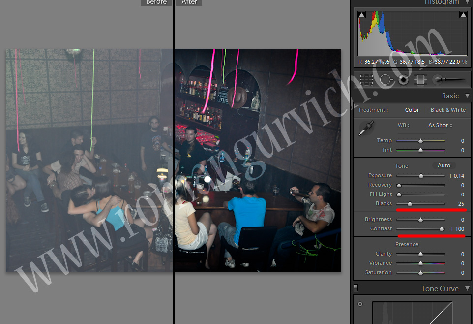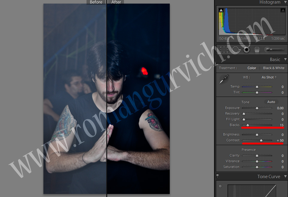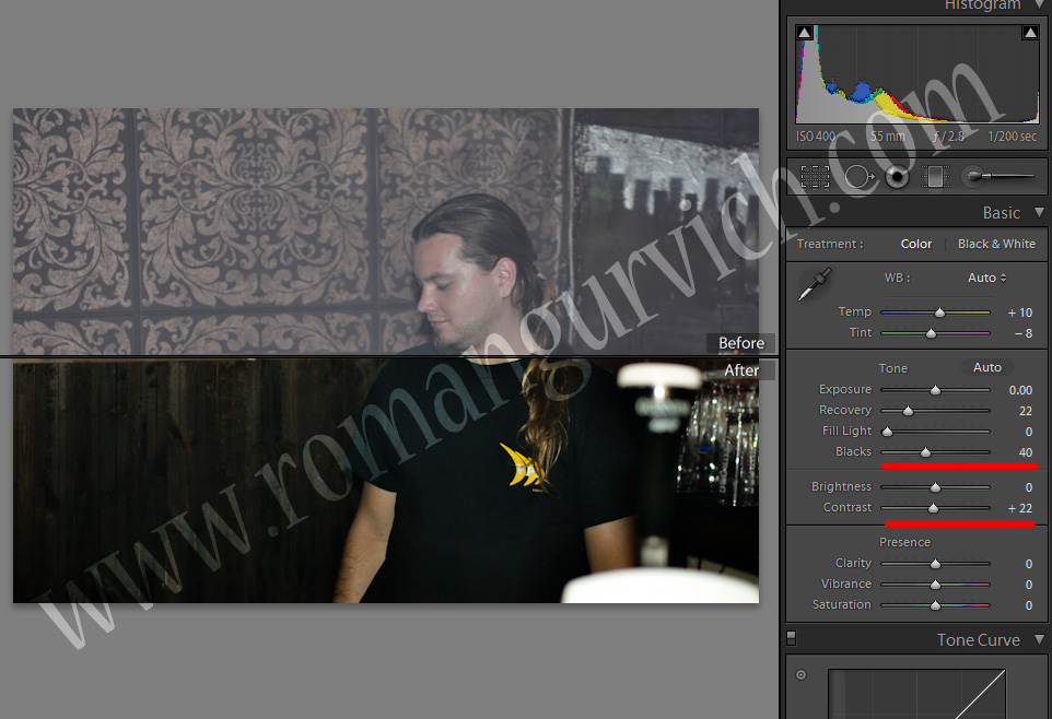 אז ע"י העלאת הקונרסט, וחיזוק הBlacks והחלשת הFill lights, מתקבלת לנו תוצאה דיי יפה. (כמובן תיקונים מינוריים כמו NR / Sharpening יתכן ויהיו נחוצים)