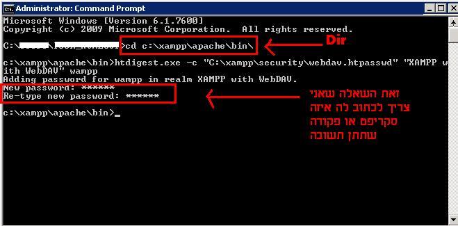 htdigest.exe -c "C:\xampp\security\webdav.htpasswd" "XAMPP with WebDAV" wamppהוא שואל אותי מה הסיסמה,ואני צריך למצוא דרך לרשום לו אותה מראש בבאט או בסקריפט...ואחרי זה וריפיקציה