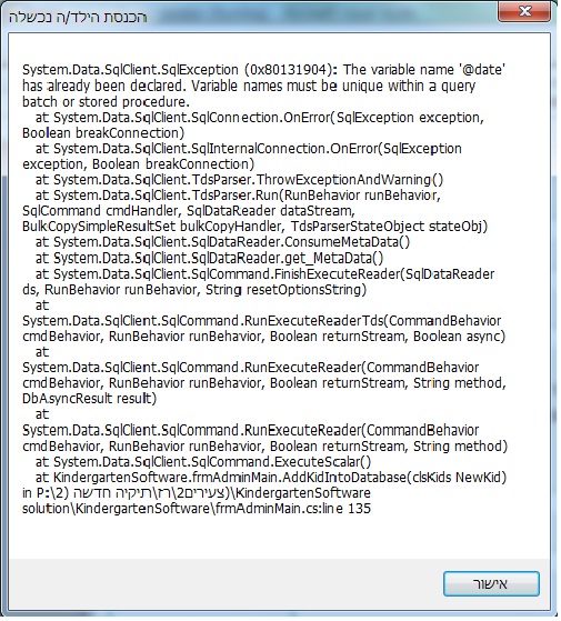 foreach(Child child in children) { DB.SelectParameters.Clear(); //adding fields DB.SelectParameters.Add("date", DateTime.Now.ToString()); }