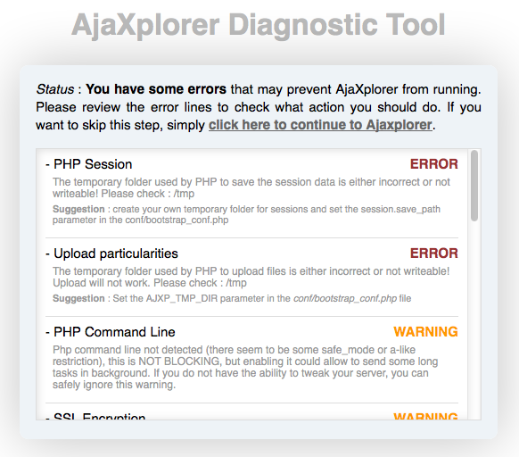 "בעיות בתהליך ההתקנה - AjaXplorer"