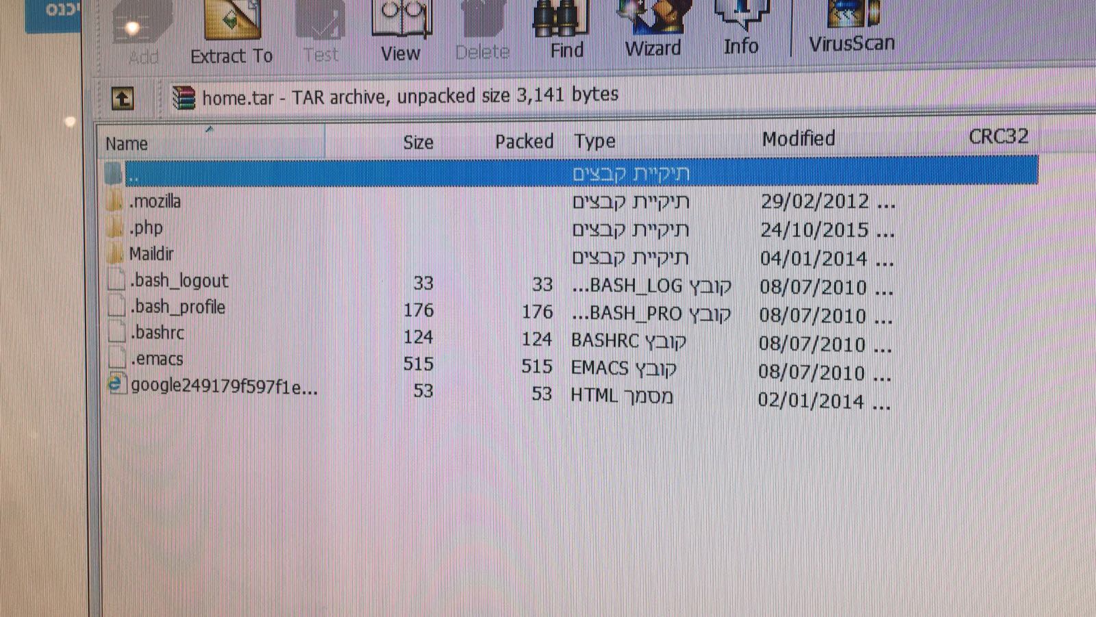 ואת תוכן הקובץ home.tar