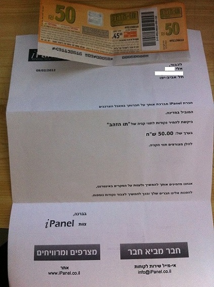 הוכחה לשובר שקיבלתי במכתב לבית: