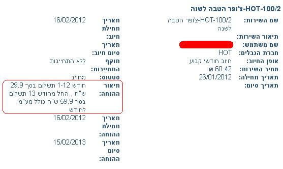 כי עברת להוטנט. נציג ה שירות לקוחות ינסה לשכנע אותך לנהישאר - תגיד שכבר עברת ואתה לא רוצה לנהל מו"מ- רק שינתקו אותך. נציג שירות הלקוחות יעביר אותך לנציג של קשרי לקוחות ולנציג הזה תגיד שאתה רוצה את המחיר של ה25 ש"ח למהירות 12 מגה. יכול להיות שהוא יגיד שאין דבר כזה, תתעקש שאתה יודע שקיים - במצב הכי גרוע תסגור איתו על 29.90 (קיים לכל המהירויות).