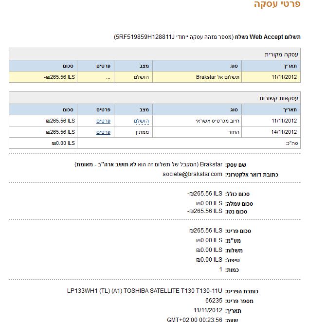 ב-11/11 רכשתי מוצר מאיזה אתר ושילמתי דרך PAYPAL