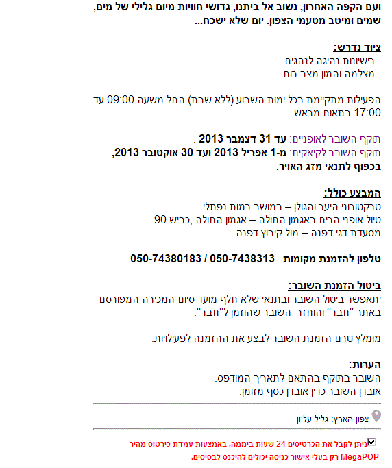 "למכירה שובר לטרקטורונים, אופניים\קיאקים ומסעדה"