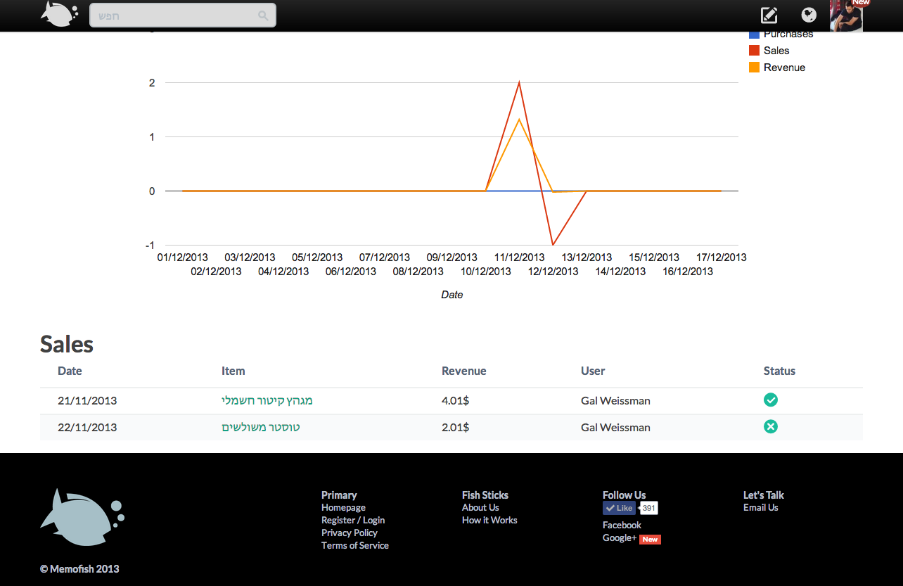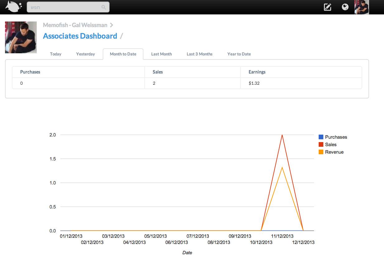 בינתיים, ניתן לצפות במכירות של מוצרים שהעלתם (או של אנשים אחרים) בחלק העליון של תפריט המוצר.