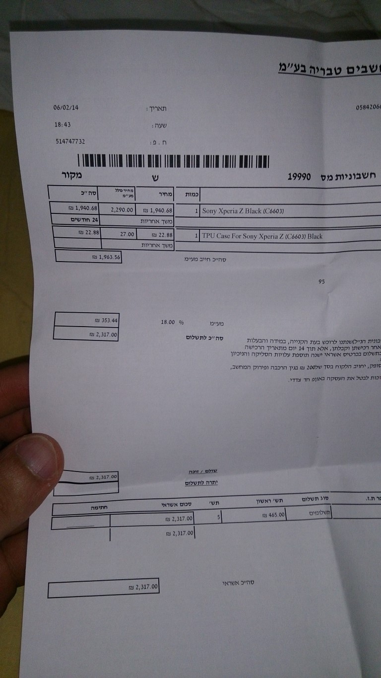 המכשיר נרכש מ-KSP ב-6/2/2014 (כן כן, בסך הכל שבועיים) במחיר של 2,317 ש"ח