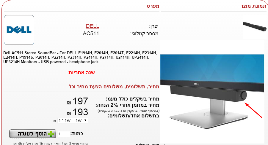 "האם המוצר הבא -רמקול למסכי דל מתאים ל U2713H+תמונה"