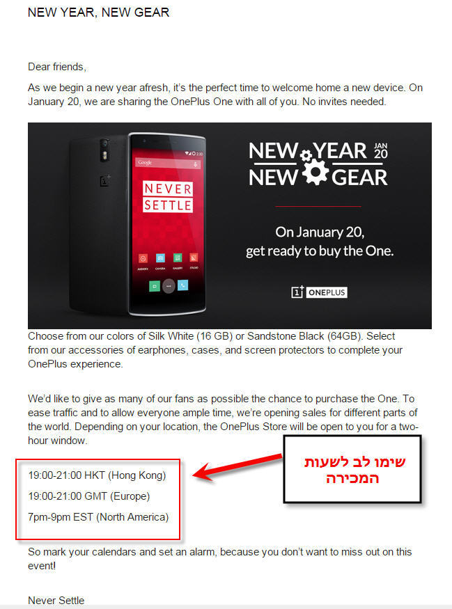 "מחר- הזמנת פלאפאון ONEPLUS ONE ללא צורך בהזמנה"