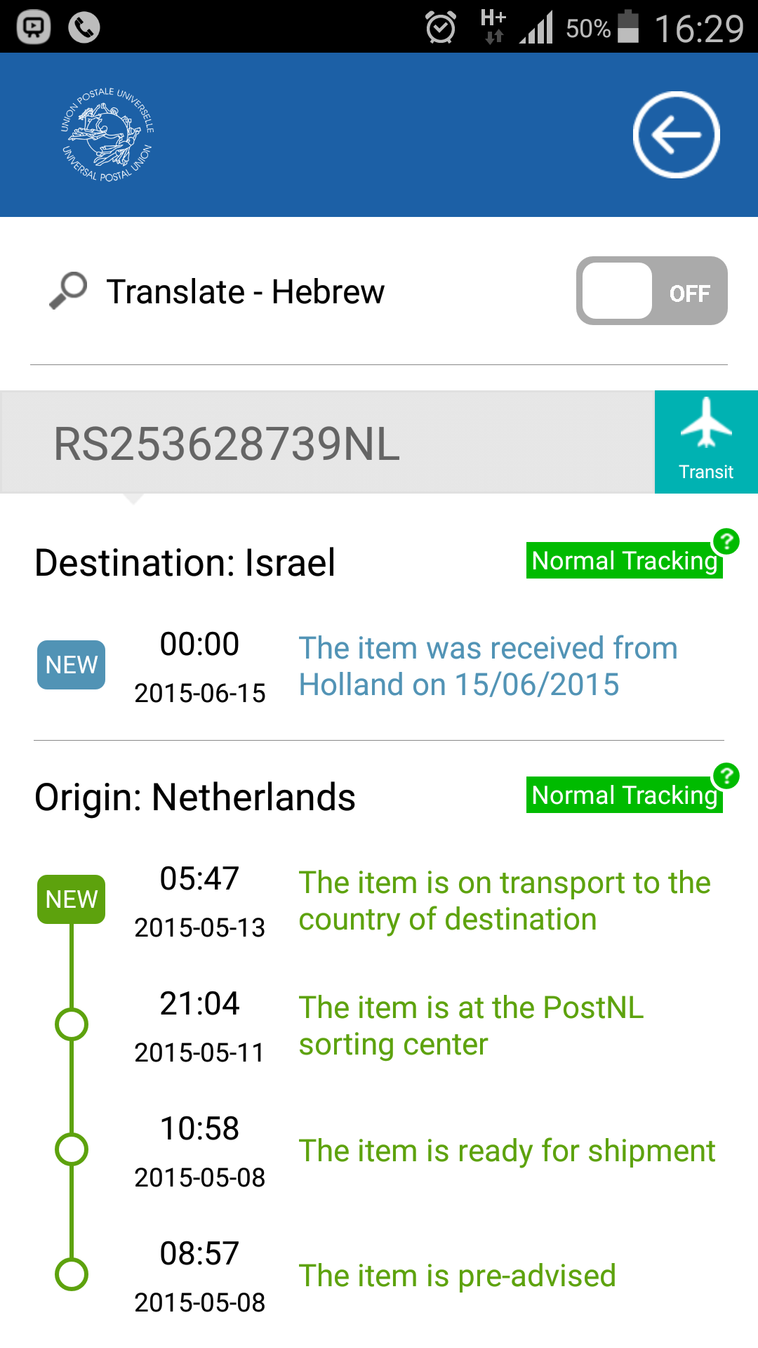 ואגב זה שלא ציינת שזה received מהולנד ושזה רשום באתר של דואר ישראל זה הבדל רציני