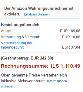 ובהרבה מקרים יצא לי שקיבלתי גם זיכוי אחרי תקופה על מיסים שלקחו בטעות יותר ממה שהיו צריכים ברוב המוצרים כתוב לך בצמוד את התוספת משלוח ליד המחיר במידה ואתה בלוגין לחשבון שלך. בכל מקרה אמזון הרבה אבל הרבה יותר אטרקטיבי מאיביי בזמן האחרון המשלוחים מהירים עד 14 יום זה אצלך ביד לעומת איביי שנהיה זוועה בזמני משלוח שלא לדבר על מחירי המשלוחים ההזויים שנהיו שם ערימות של זיופים לעומת אמזון הכל רשמי ואין מה לחשוש