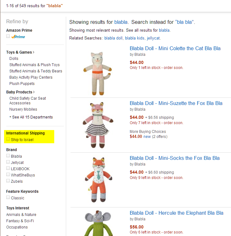 "היכן יש אפשרות לסמן באמזון שיעשה חיפוש רק עם משלוח לארץ?"