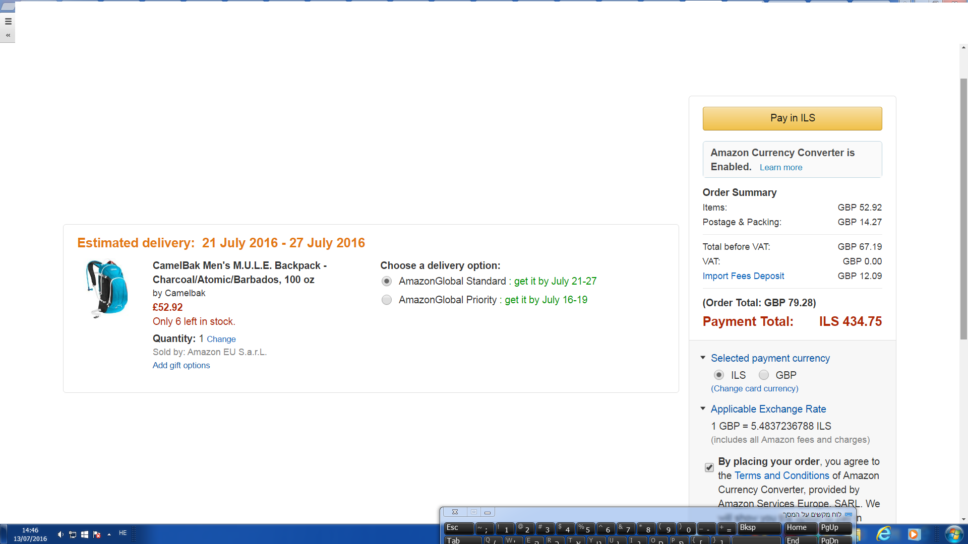 ממליץ לך לא לשלם בשקלים, כי יחס ההמרה של אמזון גבוהה בד"כ מיחס ההמרה של חברות האשראי...