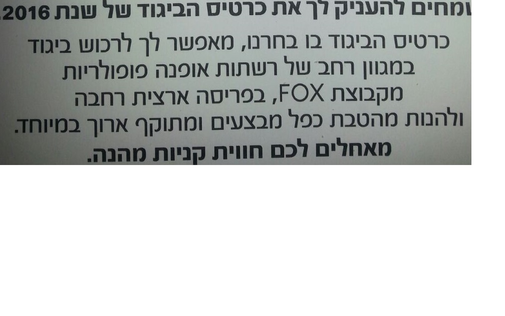 "למכירה 2 כרטיסי ביגוד למגוון רשתות אופנה מקבוצת FOX"