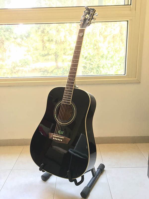 הגיטרה נרכשה מכלי זמר לפני כשנתיים. בקושי ניגנתי בה (חשבתי שאלמד לנגן יותר מהר ממה שבאמת למדתי).