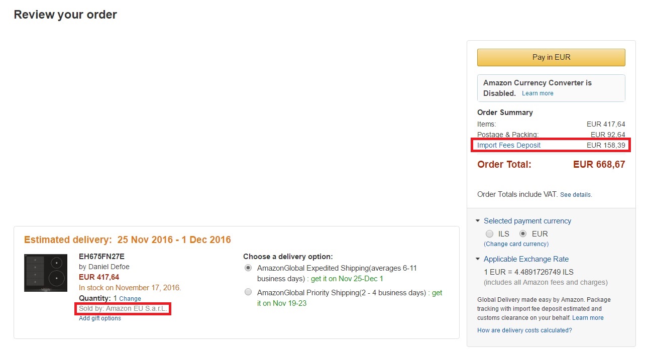 אחד אומר שהספק הוא אמזון והשני שחלק מהתשלום הוא למיסים בארץ.