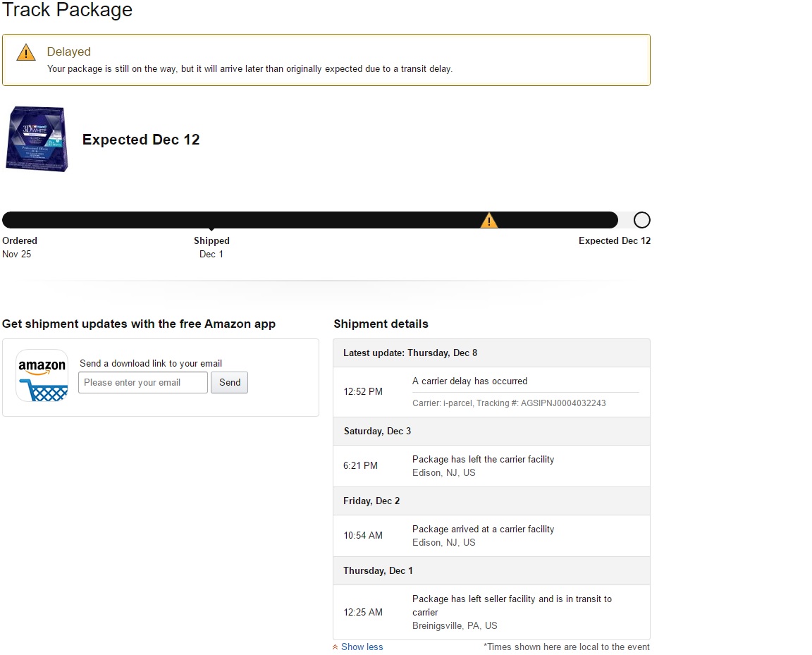 1. תאמת גם לי יש שתיי הזמנות מאמזון שמתעקבות וחרגו מהתאריך