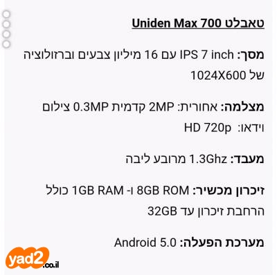 טאבלט 7 אינץ' - Uniden Max 700