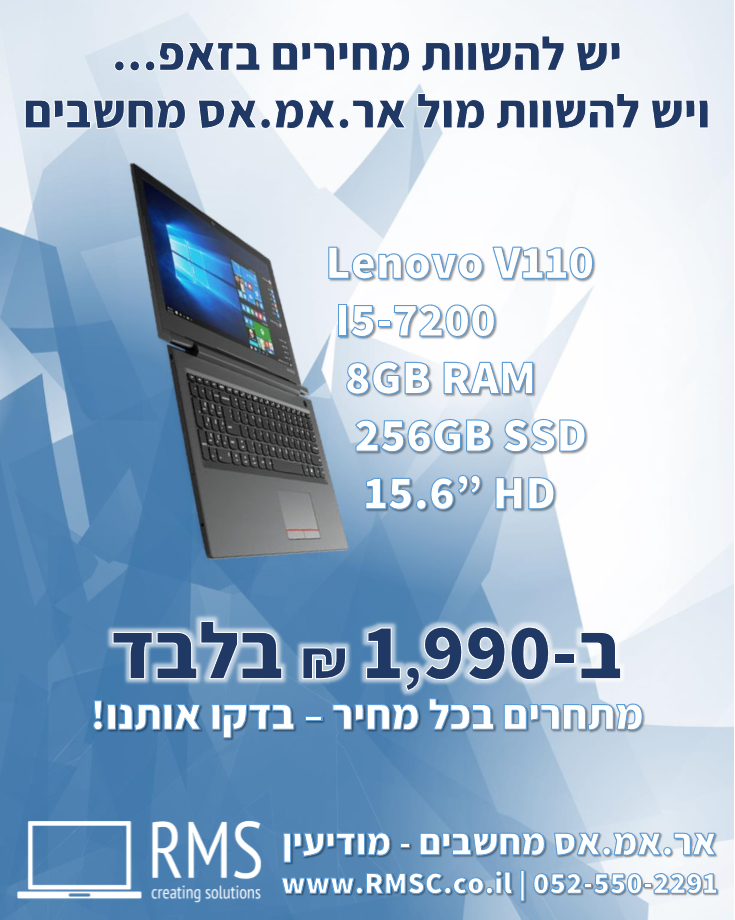 "מחשב נייד Lenovo V110 i5-7200/8GB/256GB רק ב-1990 ש''ח"