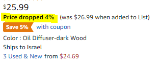 אם שמרת מוצר ל Wishlist אתה תוכל לראות באחוזים כמה השתנה המחיר שלו מאז שהוספת