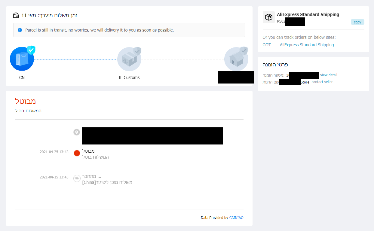 "שאלה רכשתי מוצר מאלי אקספרס שעולה כ 25$ לפני חודש והוא בסטטוס של משלוח canceled"
