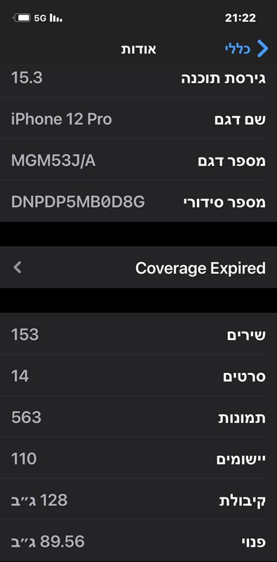 אייפון 12 פרו, 128 ג''ב בן שנה clean  04.02.22 19:25 כותרת