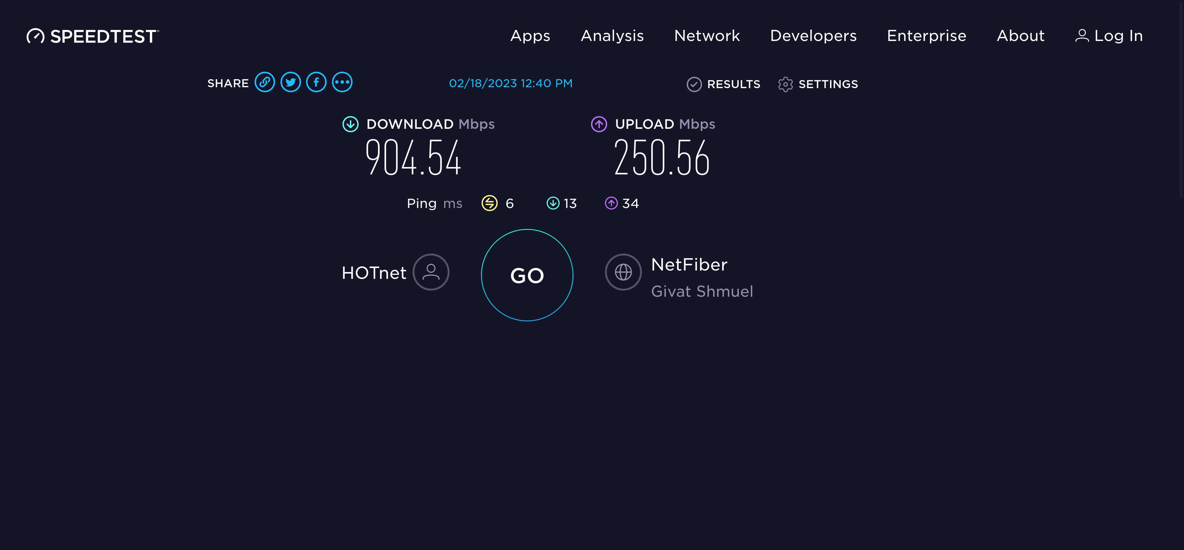 זאת המהירות שקיבלתי הבוקר בספיד טסט: