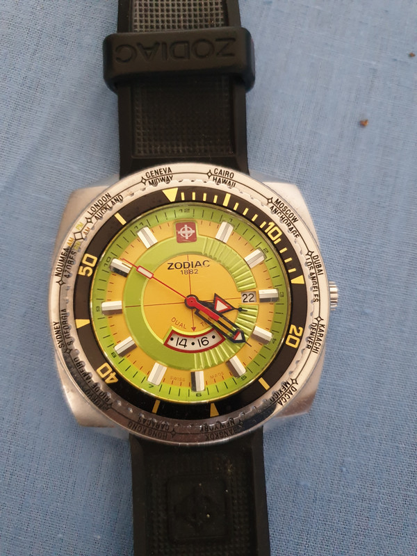 השעון הוא שעון מקורי של Zodiac מסדרת הSuper Sea Dragon. נדיר במיוחד, כמעט אין להשיג אותו בעולם. עמידות למים כמובן 100 מטר. צבעים משגעים ורצועת סיליקון.