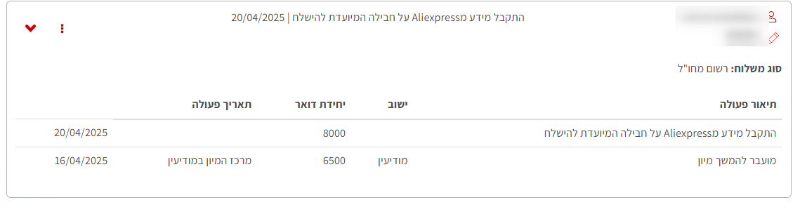 בד"כ כשהמשלוח מוקם מקבלים הודעה מהדואר ש "התקבל מידע מAliexpress על חבילה המיועדת להישלח" והנה הפעם, הגיעה הודעה ב16 שהמשלוח במרכז המיון במודיעין, ו4 ימים לאחר מכן הסטטוס השתנה ל"התקבל מידע וכו'".