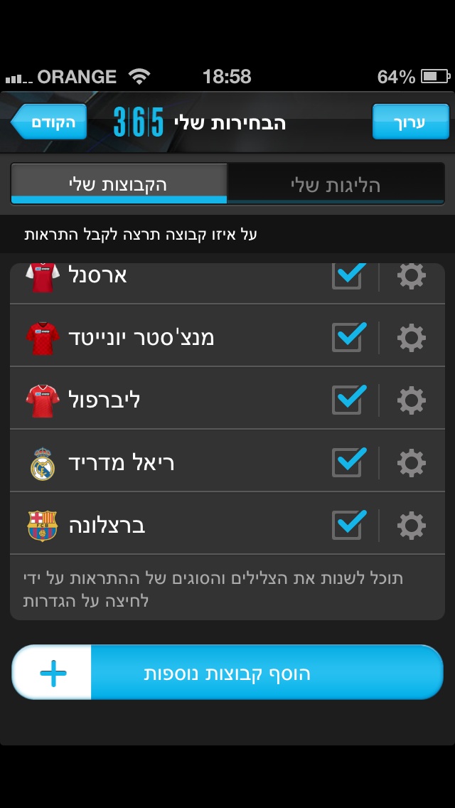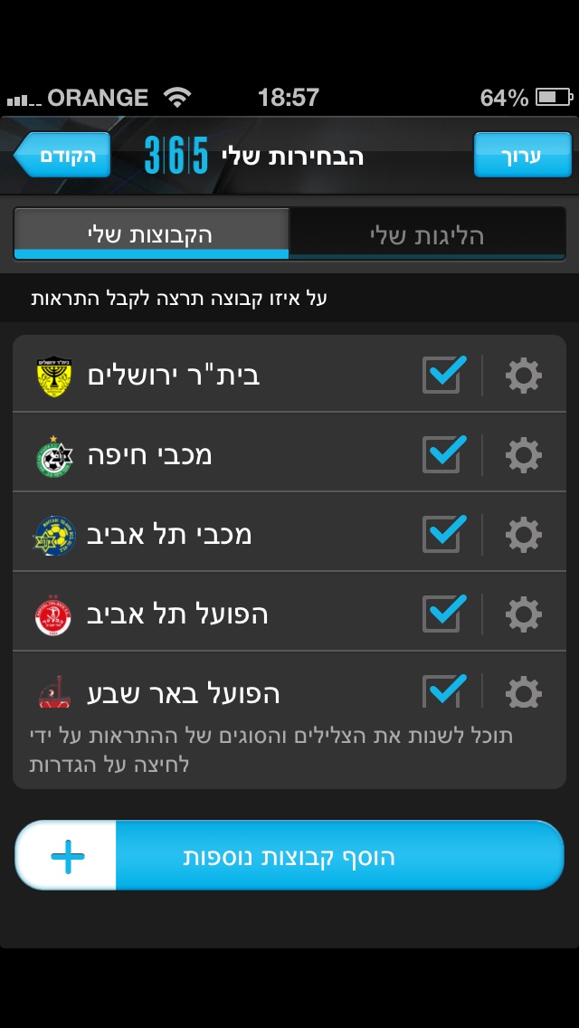 מדובר האפליקציה שיש שמתריעה בלייב על גולים , תחילת משחק , כרטיסים , וסיום משחק לקבוצות/ ליגות שאתם מוסיפים למועדפים.
