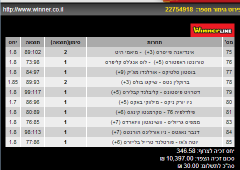 אינדיאנה אחת ההפתעות, כל אתרי הסטטיסטיקות נתנו יחס גבוה למיאמי... אבל נחמד לתפוס 8 מתוך 10....