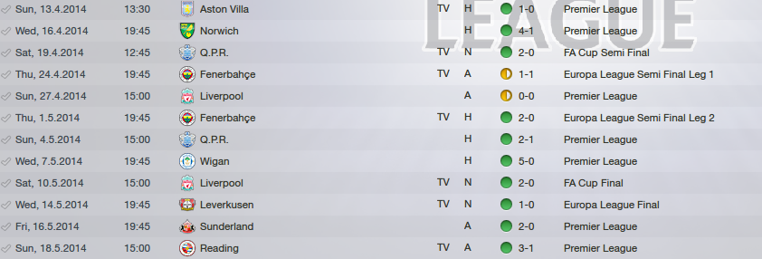 מחזורי הסיום אני עם משחק חסר שבמידה ואני מנצח אותו אני מקום ראשון בליגה. מול QPR בבית, אני חייב לנצח גראנרו בדקה ה-7 בבעיטה חופשית הורג אותי, אחרי זה סיסה מציל אותי קצת אבל עדיין זה לא מספיק. המשחק הזה אחרי משחק מתיש באופא ואז הגול הכי הזוי שאני ראיתי. יש םה תקציר: