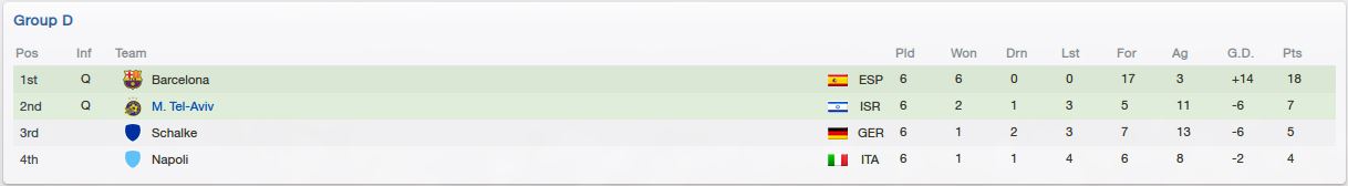 ניצחתי פעמיים (!!!) את נאפולי, כולל ניצחון חוץ מדהים. בארסה פירקה לי תצורה פעמיים. עם שאלקה סיימתי בהפסד ותיקו. אין לי מושג איך, אבל עליתי.