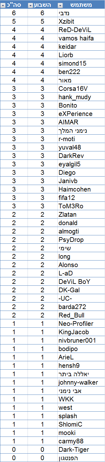 טבלת הנקודות המלאה: