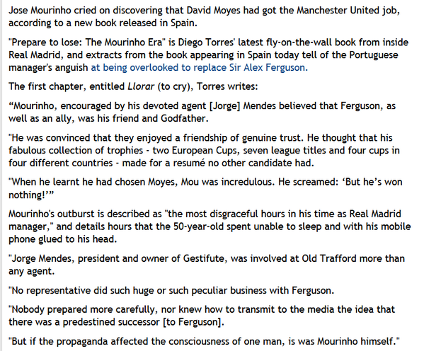 6. נשמע כמו ניחוש/הגזמה על סמך זה שכל העולם ואישתו ידעו שמוריניו רצה להחליף את פרג׳