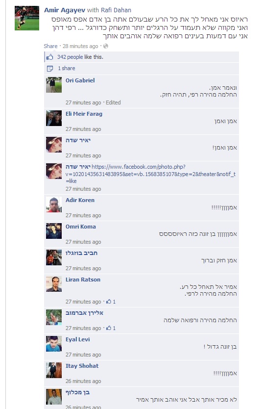 "במקרים כאלו צריך לא רק להעניש את השחקן, אלא גם את הקבוצה שלו. קבוצה שמחזיקה שחקן כזה, שנותנת לו את הבמה לשחק כדורגל, צריך להוריד לה שלוש נקודות. שקבוצות ידעו שאסור לשחקן כזה לשחק."