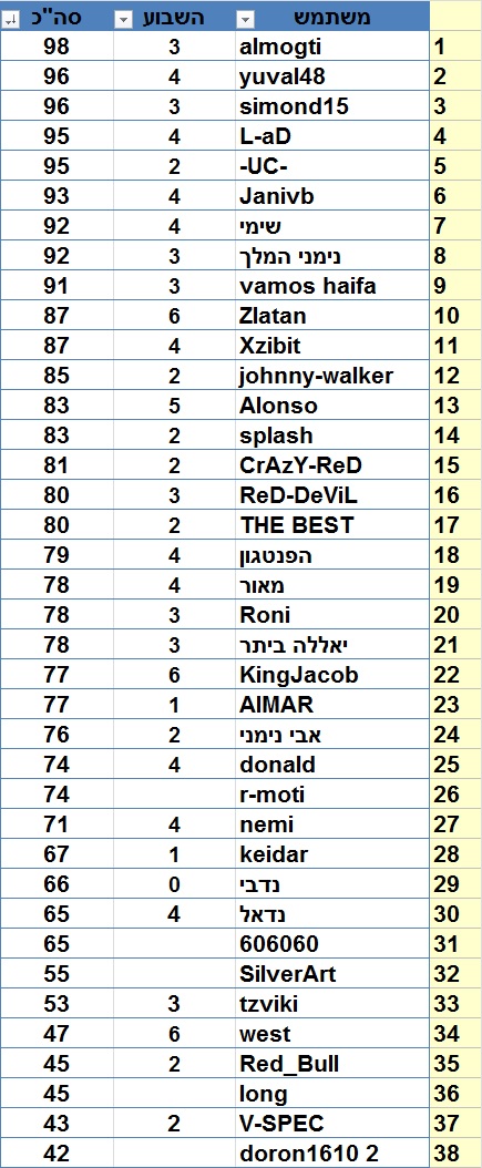 הטבלה המעודכנת לאחר המחזור ה 32