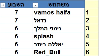 לפי חישוב מהיר שלי וומוס חיפה אתה עולה למקום הראשון כי אין הימור של שמעון בהודעה שמה ...