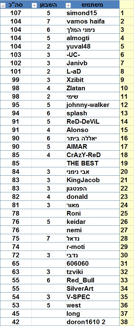 זה שהוא שם את עצמו שני לא אומר שאתה שלישי ואלמוג 3 לכולם יש את אותו מספר נקודות