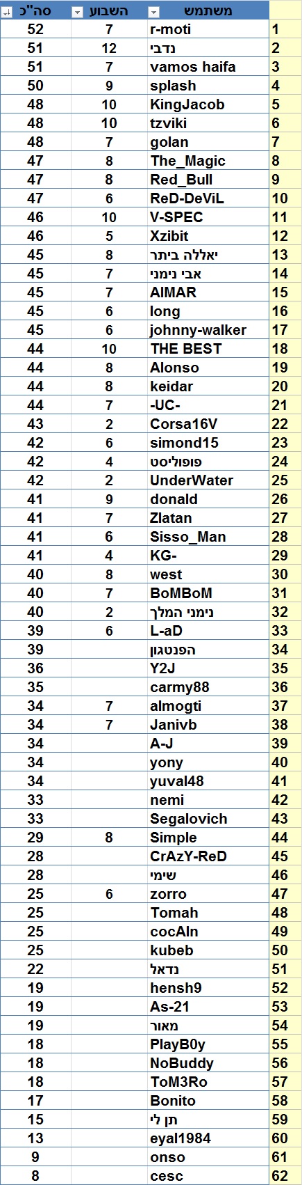 והטבלה המעודכנתצמוד מאוד בצמרת