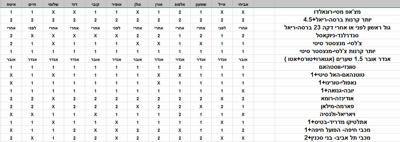אם מתארגנת קבוצה נחמדה אפשר להכין תוכניה שתתחיל בסופש הקרוב ותהיה עם ליגה ישראלית אנגלית ספרדית איטלקית אלופות וליגה אירופית ...