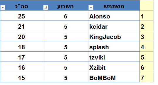 והמקום השני אשר מתחלק לכמה אנשים, כל אחד 10 נקודות.
