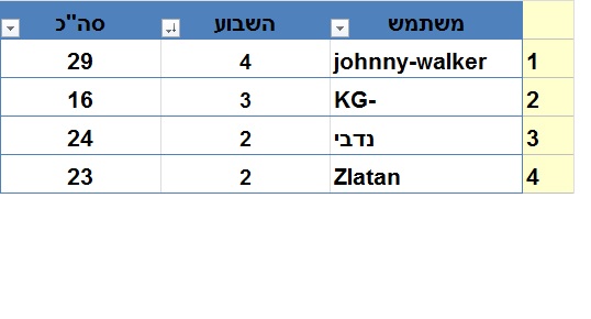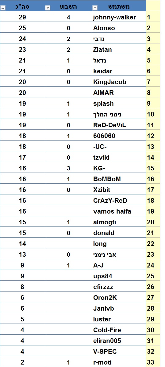 ברכות גם ל--KG-שתפס גם את תוצאת המשחק ולמקומות הראשונים השבוע http://rotter.name/User_files/nor/5486901230f3058f.jpg