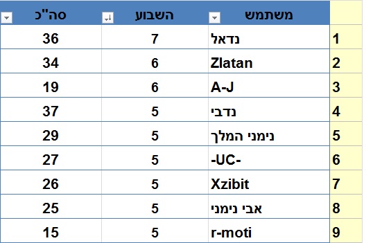 ברכות גם לשאר המקומות הראשונים השבוע