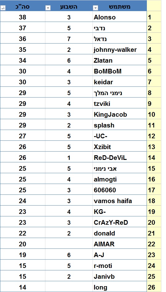 טבלה מעודכנת: