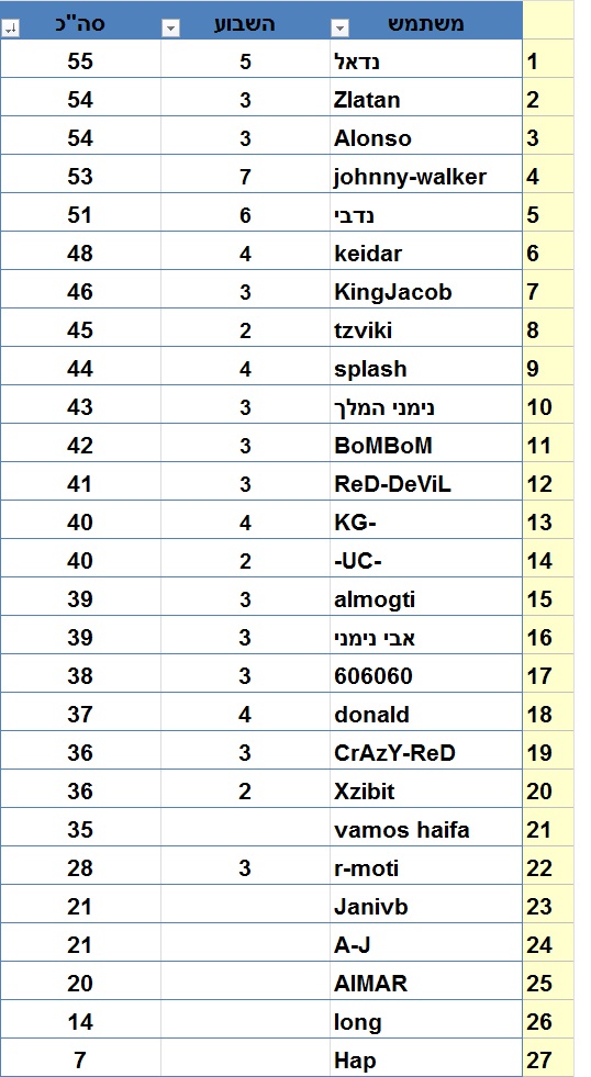 לא מצליח לעלות בטבלה... נדבי  27.01.15 09:13 3