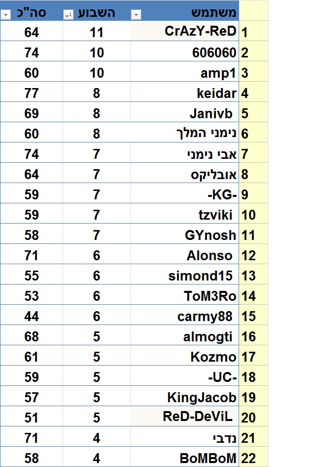טבלה שבועית:
